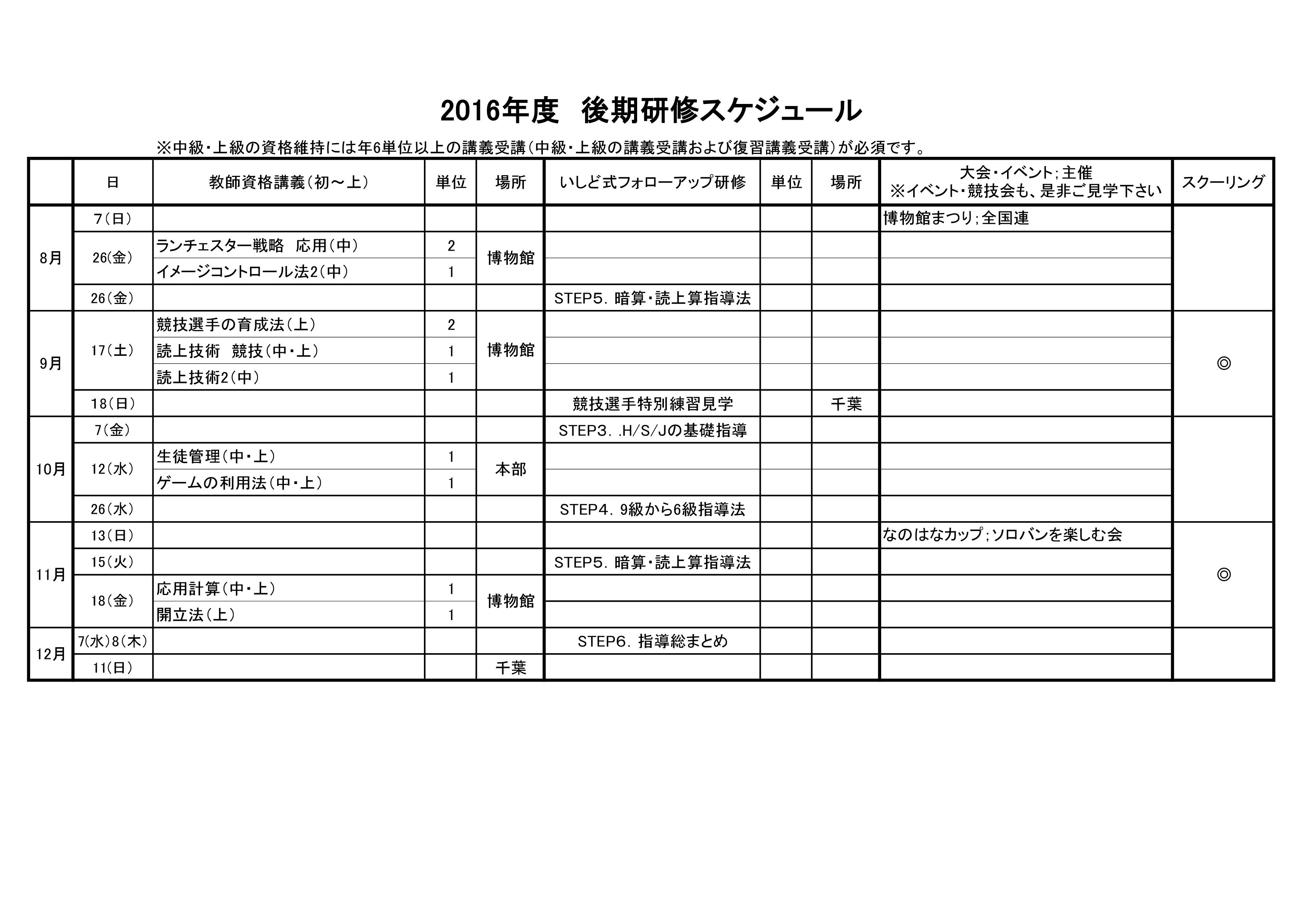 トップ > 研修・競技会 > 平成28年後期 教師資格研修スケジュール